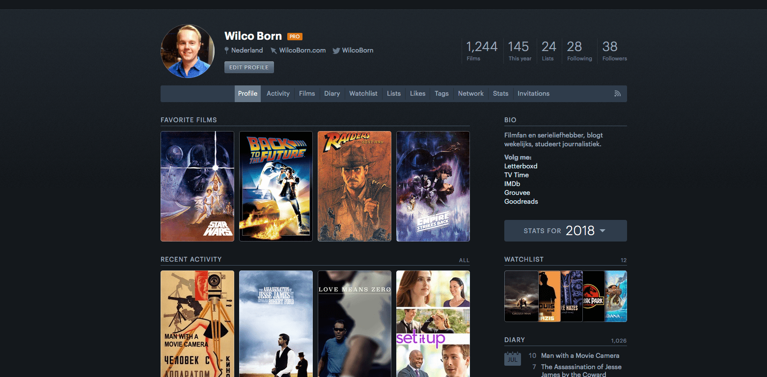 Op een aantal fantastische pagina’s laat je de wereld weten wat je favoriete films zijn, van welke regisseur je de meeste films zag, wat je favoriete filmdecennium is, en ga zo maar door. Hoeveel uur je keek in 2017? Als je het goed bijhield, staan de stats voor je klaar! Dat wíl je toch weten?!